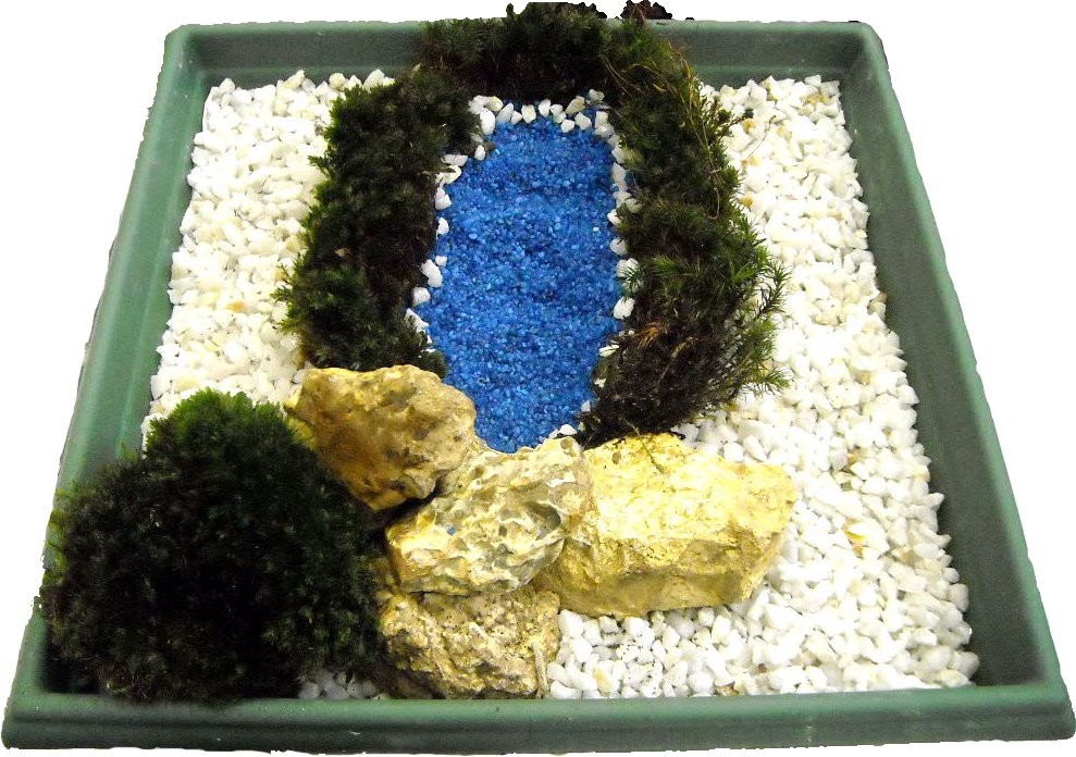 graviers blanc et grains bleu
