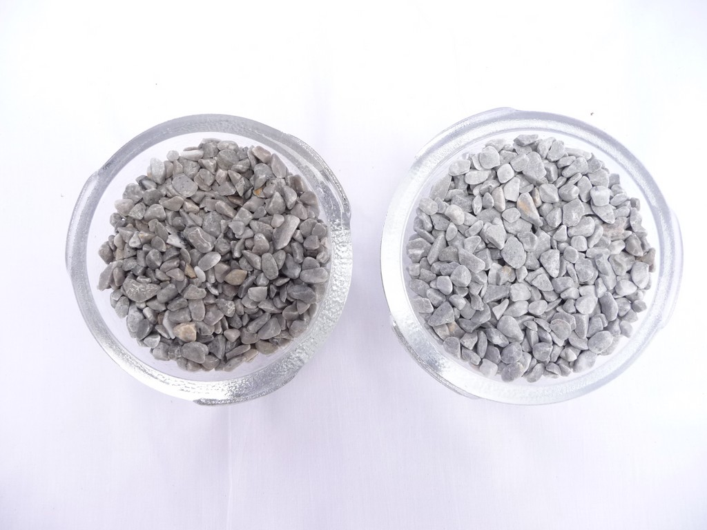 TAILLE 5/8 mm image de gauche : couleur du galet de marbre résiné - image de droite : couleur du galet de marbre sec avant mélange avec la résine.