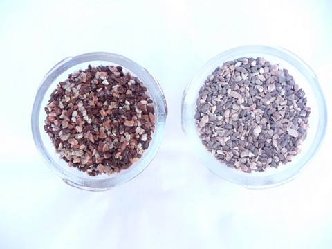 TAILLE 2/5 mm image de gauche : couleur du galet de marbre résiné - image de droite : couleur du galet de marbre sec avant mélange avec la résine.
