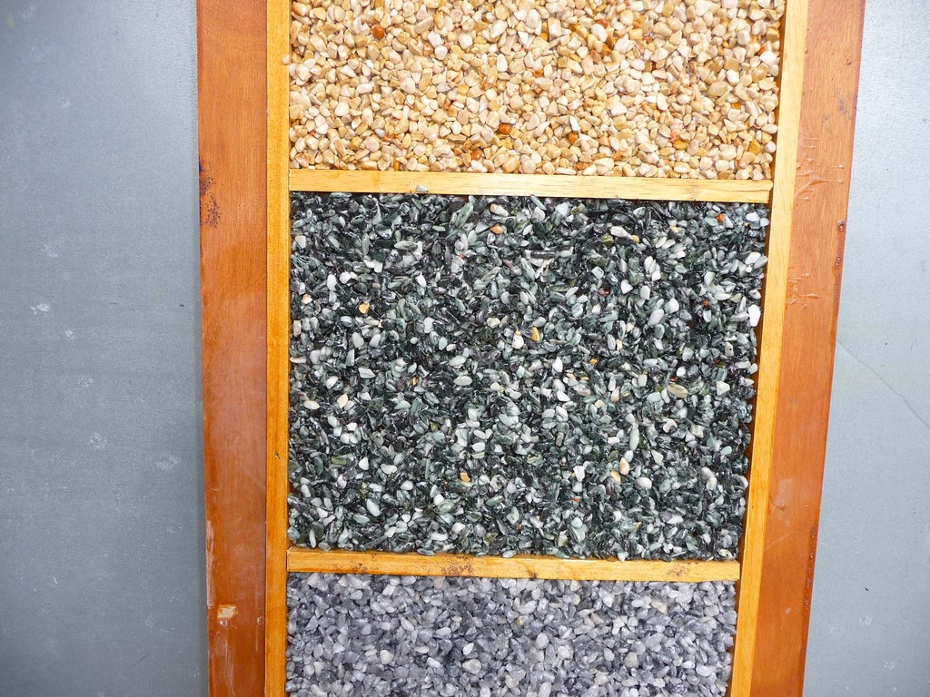 Les différentes couleurs des graviers de marbre peuvent être utilisées ensemble pour créer des dessins, étoile rosace ect....