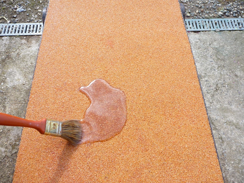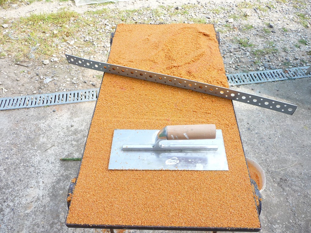 Mélanger la résine d'époxy avec le durcisseur puis avec le sable (diluer avec un solvant comme de l'acétone si trop difficile à mélanger)